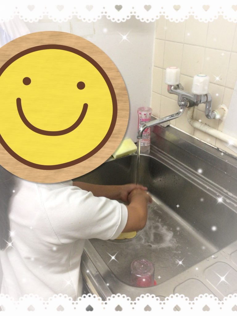 その後は、しっかりと手洗いをして清潔に。みんなで順番を守りながら取り組むことができました。