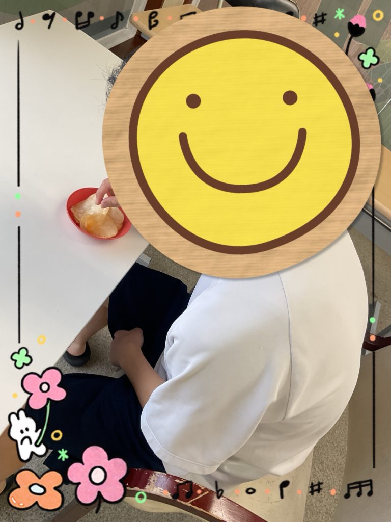 おやつの時間には、にこにこと楽しそうに食べる姿が見られ、和やかなひとときとなりました😊