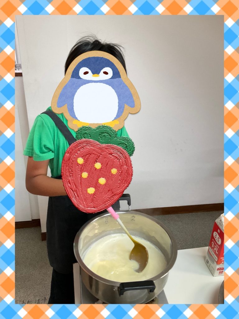卵を割ったり、牛乳を混ぜたりと、一人ひとりがしっかり役割を持って参加することができました。出来上がったプリンはつるんとしていて、とてもおいしそうでしたよ✨