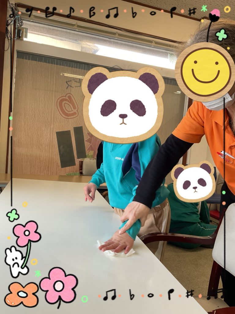 おやつや課題が終わると自分から進んで拭くことが出来ました!