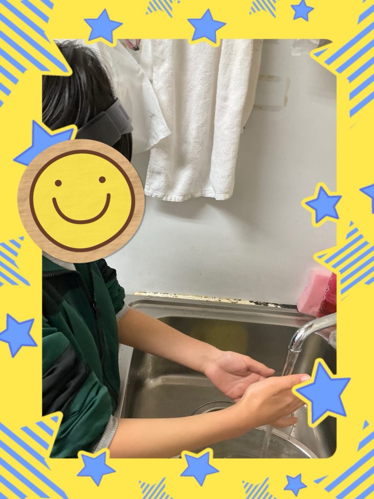 今日は調理実習に向けて、まずは手洗いから行いました。