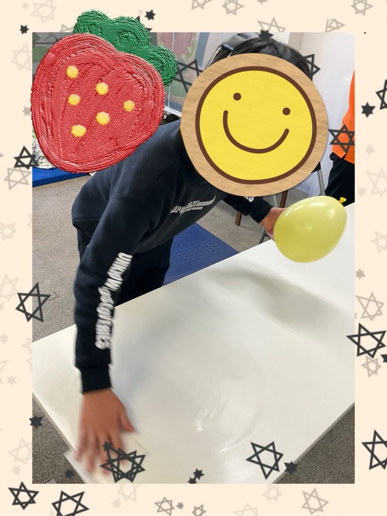 手洗いの後は、アルコールペーパーを使って机拭きを行いました。