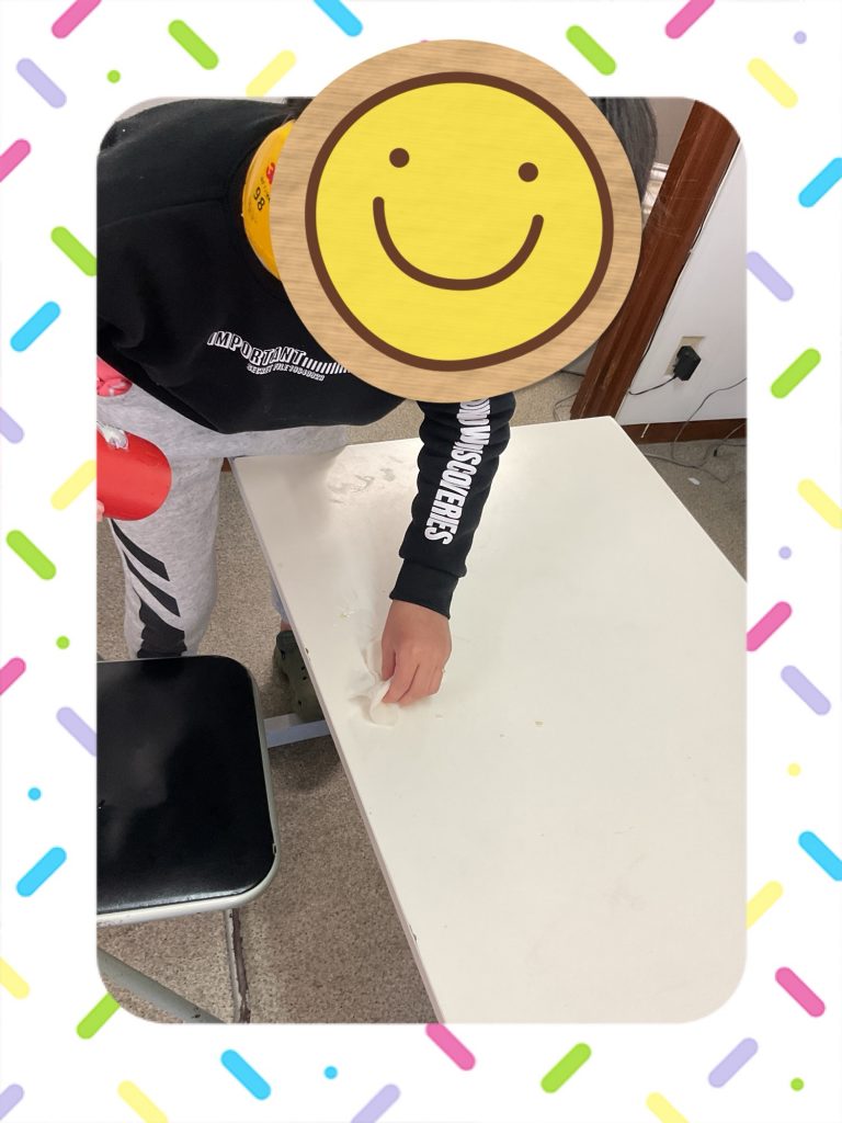 食べ終えたらアルコールペーパーで机拭きを行いました。