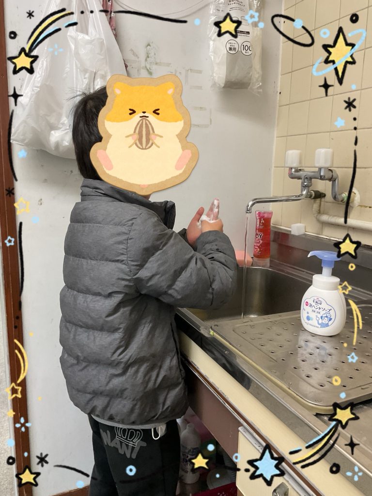 今日は活動の前に、みんなで丁寧に手洗いを行いました。
