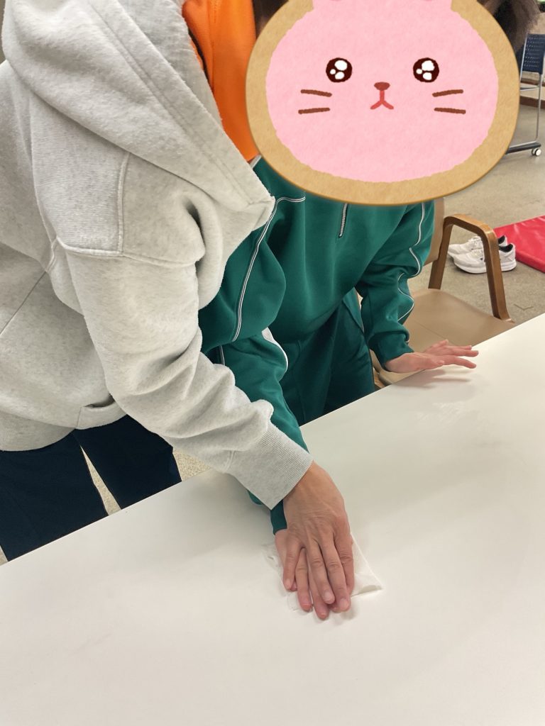 おやつを食べる前後でペーパーで机を拭く姿が見られました