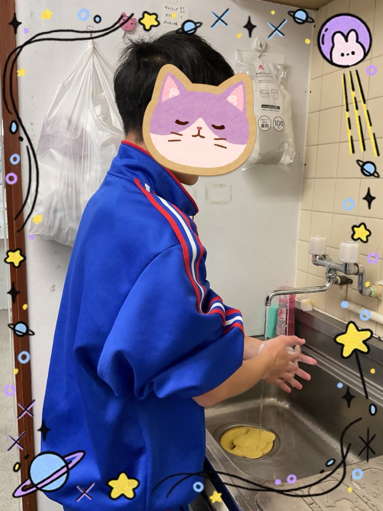 石けんを泡立てて、指の間や手首まで丁寧に洗うことを意識しました👏