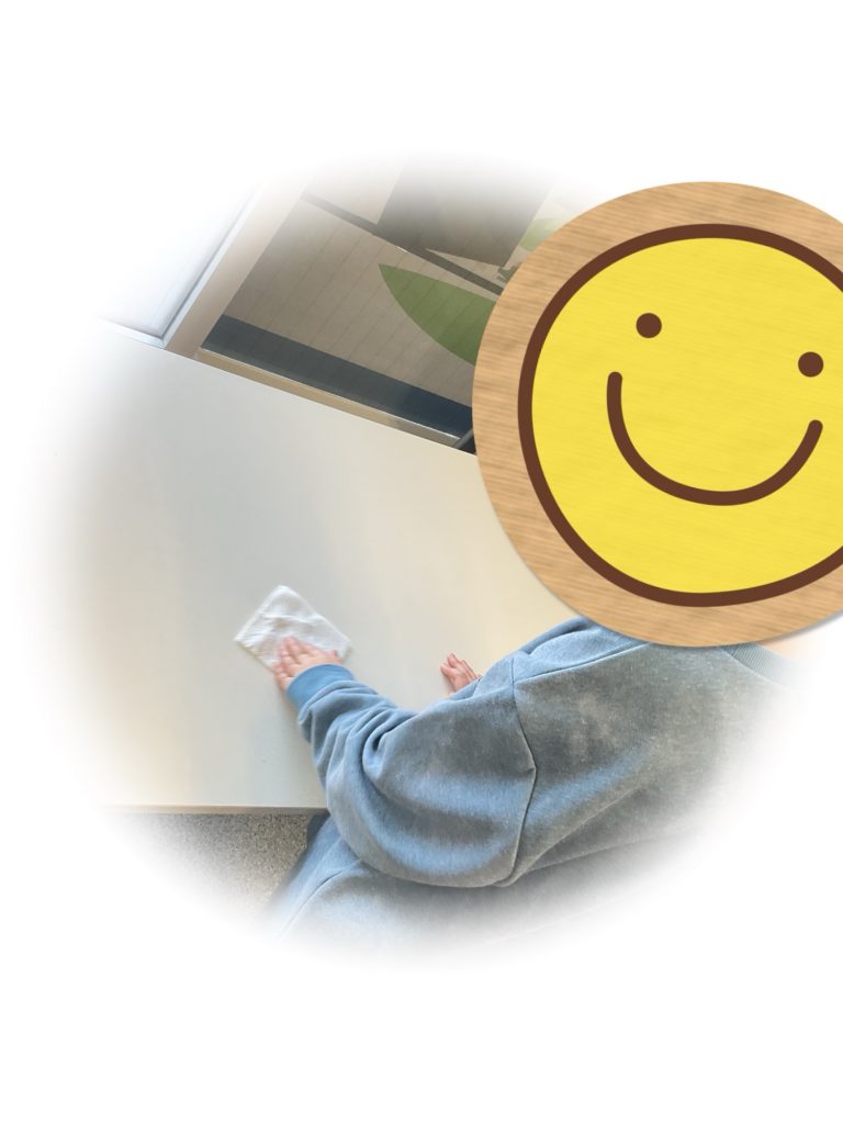 おやつの後や作業の前後に、自分の使った机をきれいにする練習です。