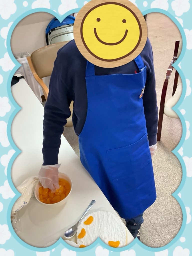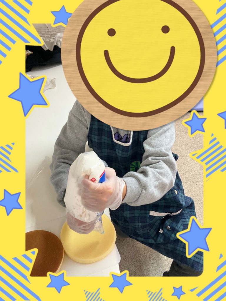 今日は、みんなでクリスマスケーキ作りを行いました。