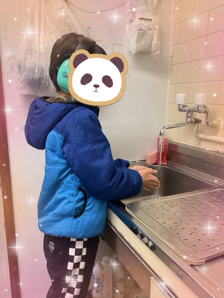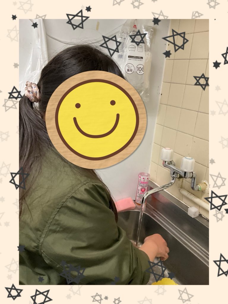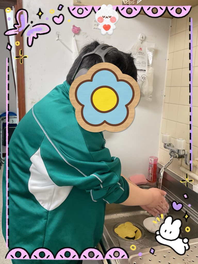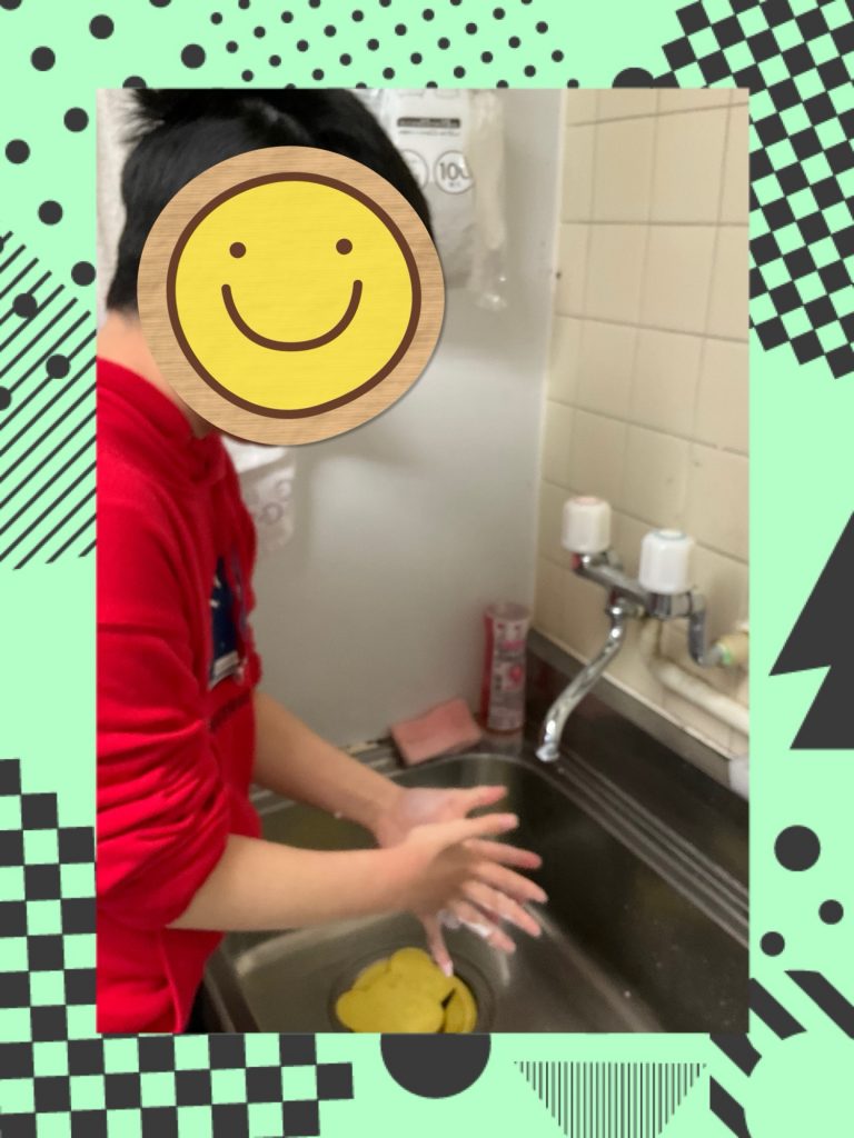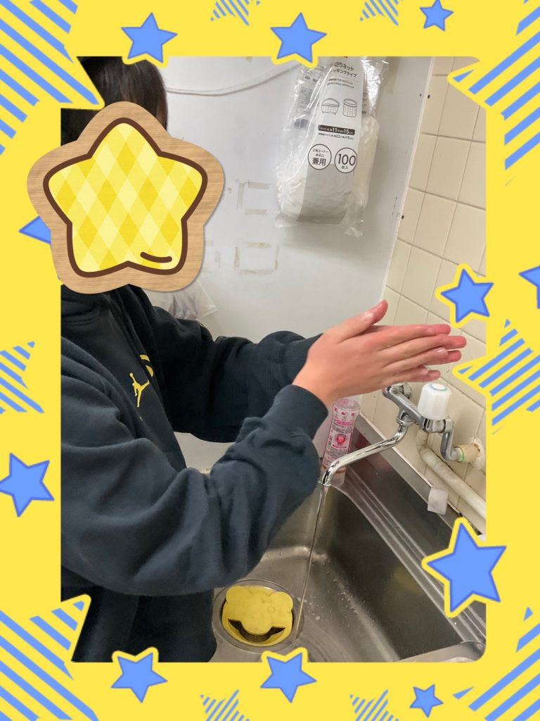 石けんを使い、手のひら・指の間・手首まで丁寧に洗うことを確認しながら取り組み、衛生面への意識を高めています。